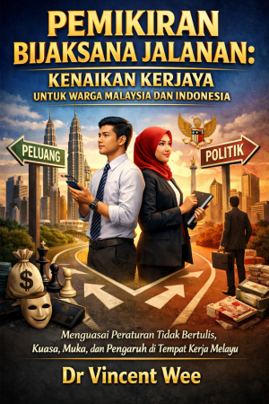 PEMIKIRAN BIJAKSANA JALANAN: KENAIKAN KERJAYA UNTUK WARGA MALAYSIA DAN INDONESIA Menguasai Peraturan Tidak Bertulis Kuasa, Muka, dan Pengaruh di Tempat Kerja Melayu Adakah ijazah dan kerja keras sahaja cukup untuk membawa anda ke puncak korporat? Dalam realiti perniagaan di Asia Tenggara, jawapannya adalah tidak. Dr. Vincent Wee, seorang CEO Global, Profesor Universiti, dan mantan Nakhoda Kapal, mendedahkan "kod rahsia" yang tidak diajar di dewan kuliah. Buku ini bukan sekadar teori pengurusan; ia adalah sebuah manual taktikal untuk mengemudi Geografi Manusia. Melalui kanta pengalaman empat dekad, Dr. Wee membongkar bagaimana "Air Muka," "Peta Bayangan," dan "Agenda Tersembunyi" menentukan siapa yang sebenarnya berkuasa di sebalik carta organisasi yang kaku. Dari bilik lembaga pengarah di Singapura ke pusat operasi di Jakarta dan Kuala Lumpur, anda akan belajar untuk menjadi seorang Master Finisher—pemimpin yang bukan sahaja bijak merancang, tetapi pakar dalam mendapatkan hasil nyata di tengah-tengah birokrasi yang pincang. Jangan sekadar menjadi sebahagian daripada sistem; mula menguasainya.